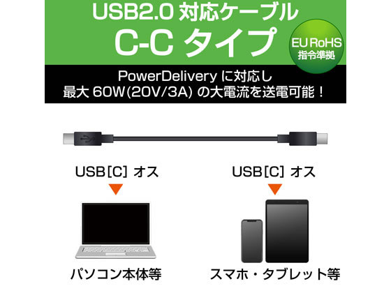 【検索用キーワード】エレコム株式会社 エレコム ELECOM えれこむ USB2.0ケーブルCCPD対応 USB2.0ケーブルCCPD ケーブル MPA−CC20PNBK ブラック MPACC20PNBK 配線用品 USBケーブルPowerDelivery(最大60W)に対応しスマートフォン・タブレットを超高速充電!