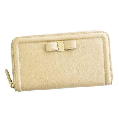 サルバトーレ フェラガモ Salvatore Ferragamo 長財布 ラウンドファスナー財布 22C908 673737 ヴァラリボン MACADAMIA ライトベージュ系